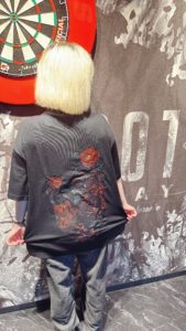 ユニフォームとお揃いの麒麟と椿が入った和風のデザイン。